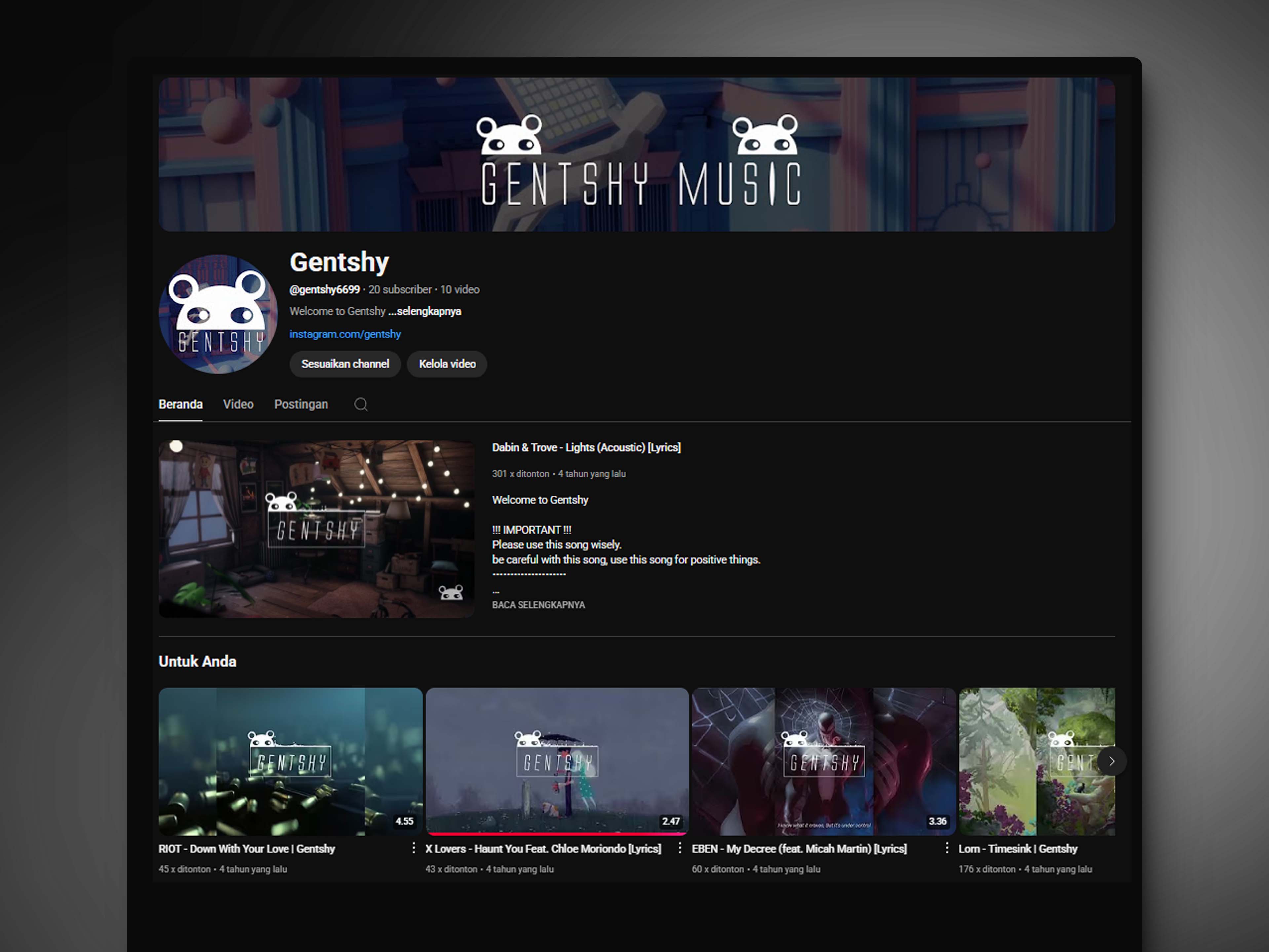 Visit Gentshy channel to discover all the story behind this Channel.